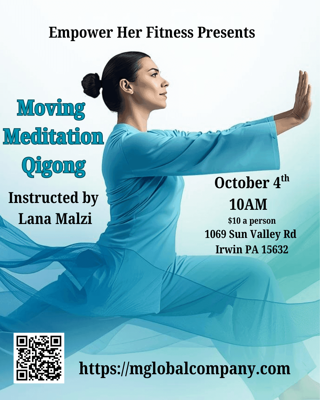 When: Friday, October 4th at 10:00 AM Where: Empower Her Fitness Cost: $10 per person (walk-in welcome!) Take a break from the busyness of life and give your body the gift of ease. In this gentle Qigong class, we’ll move through simple, flowing exercises designed to release shoulder and neck tension, improve circulation, and restore energy. No experience needed—just come as you are. Leave feeling lighter, more relaxed, and recharged for your day.